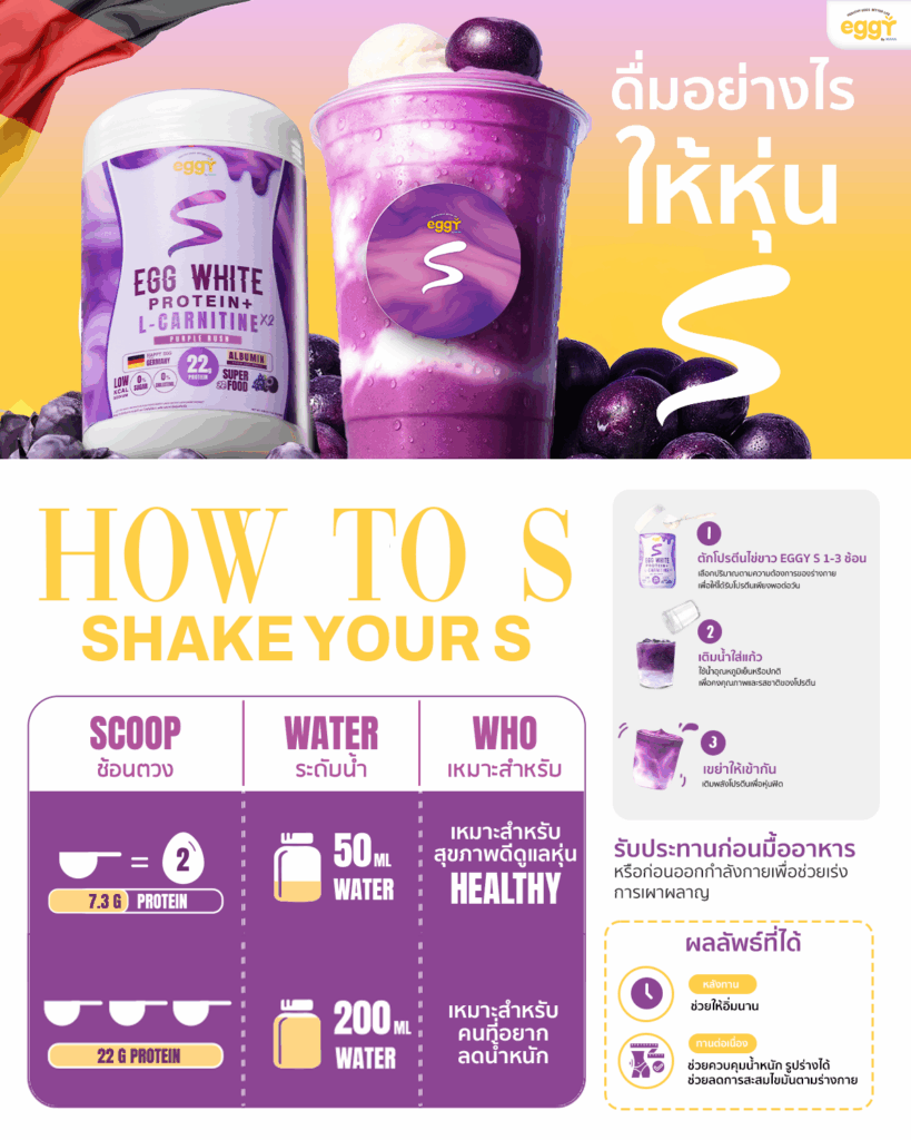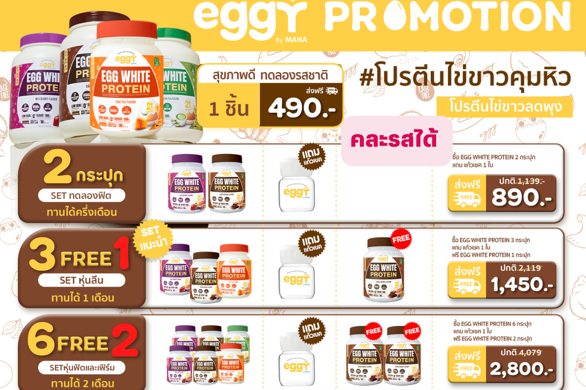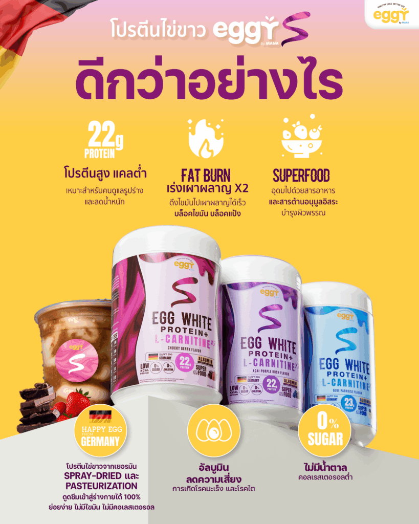 โปรตีนไข่ขาว Eggy คุมหิว ลดพุง สุขภาพดี หุ่นดี เริ่มต้นที่ไข่ eggy โปรตีนไข่ขาว eggy โปรตีนไข่ขาว eggy โปรตีนไข่ขาว โปรตีนคุณภาพสูง โปรตีนสูง โซเดียมต่ำ คอลเลสเตอรอลต่ำ 0 %น้ำตาล ไข่ขาวมีอัลบูมิน Albumin อาการของคน ขาดโปรตีน น้ำหนักลดลง แต่ลดจากกล้ามเนื้อรู้สึกอ่อนล้า อ่อนเพลีย และร่างกายอ่อนแอเจ็บป่วยง่าย ภูมิต้านทานต่ำกระดูกพรุ่น รู้สึกปวดเนื้อปวดตัวผมร่วง เส้นเปราะกว่า ปกติบวมน้ำ นอนไม่หลับ ทำไมต้องกินไข่ทุกวัน eggy โปรตีนไข่ขาว ของคุณสนยุกต์ โปรตีนคุณภาพสูง โซเดียมต่ำ วัยไหน ควรกินไข่แล้วควรกินวันละกี่ฟอง eggy 1 กระปุก ขนาด 210 กรัม ในกระปุกมีช้อนตวง ขนาด 10 กรัม มี 4 รส โกโก้ ชาเขียวมัจฉะ มิกซ์เบอร์รี่ ขาไทย ส่วนประกอบสำคัญของ eggy โปรตีนไข่ขาว รส โกโก้ เลข อย. eggy โปรตีนไข่ขาว ใครบ้างที่ควรทาน โปรตีนไข่ขาว eggy ความแตกต่างของ การกินโปรตีน ในแต่ละช่วงเวลา โปรตีนไข่ขาว eggy รสใหม่ รสชาไทย eggy โปรตีนไข่ขาว eggy มี 4 รส ดาร์กโกโก้ ชาเขียวมัจฉะ มิกซ์เบอร์รี่ ชาไทย. Promotion วันนี้เลือกรส คละรสได้ ทักคุยกันค่ะ Refill ถุงเติม eggy 1 ถุง ขนาด 1,050 กรัม เท่ากับ 5 กระปุก eggy S โปรตีนไข่ขาว สูตรใหม่ โปรตีน 22 กรัม เร่งการเผาผลาญ ผิวพรรณ คลิกหรือ แอด Line : @eggys eggy S คัดสารสกัด เพื่อหุ่น S เบริ์น x 2 ใครต้องทาน eggy s บ้าง ดื่มอย่างไรให้หุ่น S โปรโมชั่น eggy s ส่งฟรี ปลายทางฟรี สั่งก่อนหมดโปรโมชั่น สั่งซื้อ eggy สอบถาม สั่งซื้อ คลิกหรือ แอด Line : @eggys